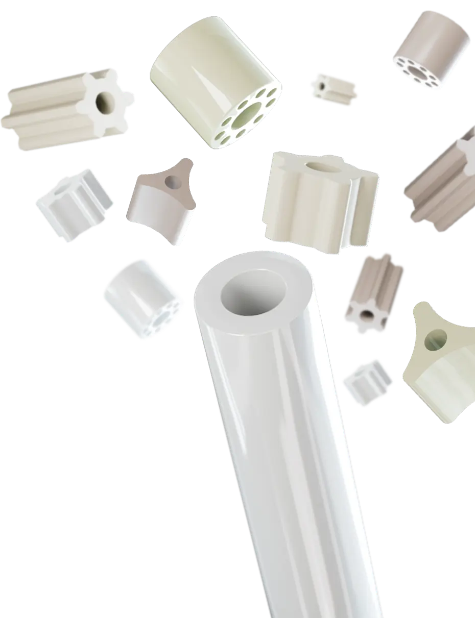 We implement the process in an entirely vertical way, fromo the idea – analysed and shared with you and your design team – to the formulation of the mixes and the preparation of the pastes, via extrusion, casting and moulding, all the way to drying, finishing and firing. All with timely delivery, accompanied by quality controls that even take in packaging and shipment. This approach allows us to offer customised, high-performance solutions to meet a wide range of industrial requirements, not just to create for new products but also to enhance the performance of your existing components.
